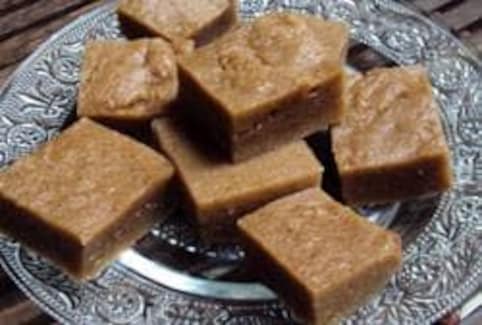 - अब एक थाली में घी लगाकर चिकना कर लें.