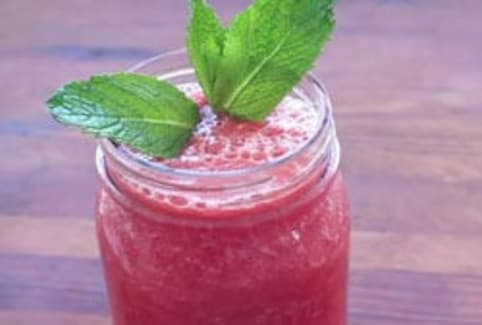 - ग्राइंडर जार में तरबूज के टुकड़े, पुदीने की पत्तियां और बर्फ के टुकड़े डालें.