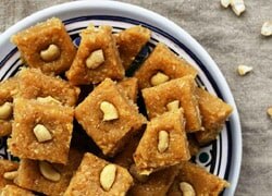 - सिंघाड़े की बर्फी पर कटे मेवे और किशमिश डाल दें और ठंडा होने पर चाकू की मदद से इसे मनचाहे टुकड़ों में