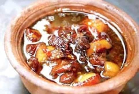 - पैन में पोर्क के टुकड़े डालें और कड़छी से चलाते हुए गुड़ के साथ अच्छे से मिलाएं. (नल्ली-निहारी)