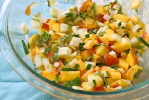 - एक बर्तन में आड़ू, खीरा, चाट मसाला और नींबू का रस डालकर मिलाएं.